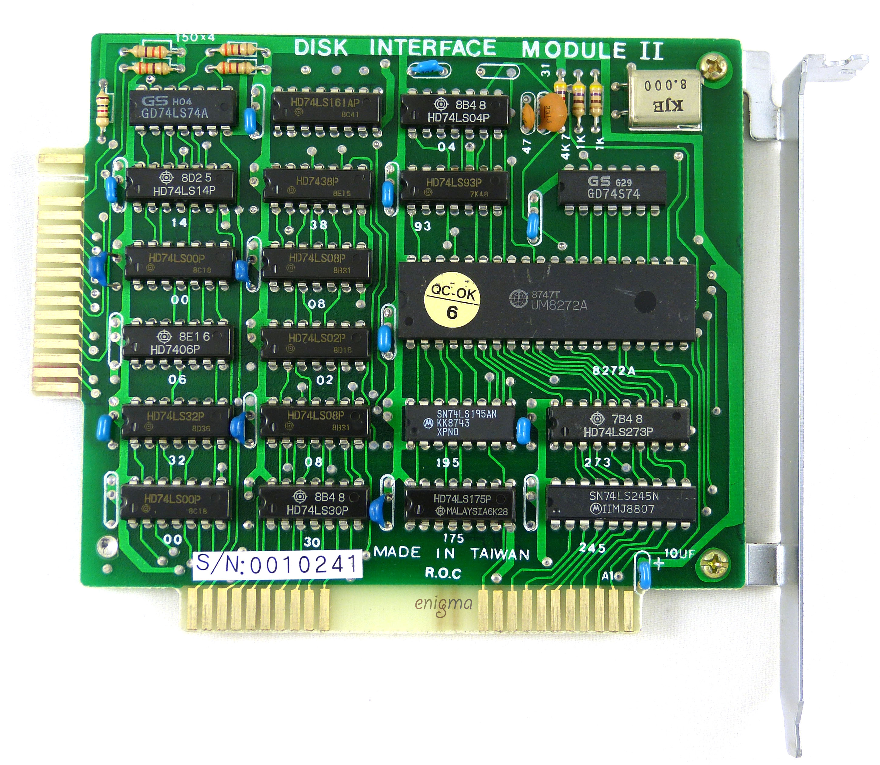 This floppy disk controller card is used in the DTK Turbo-XT for a 5.25" DD disk drive. The UMC controller chip supports Single and Double density drives.