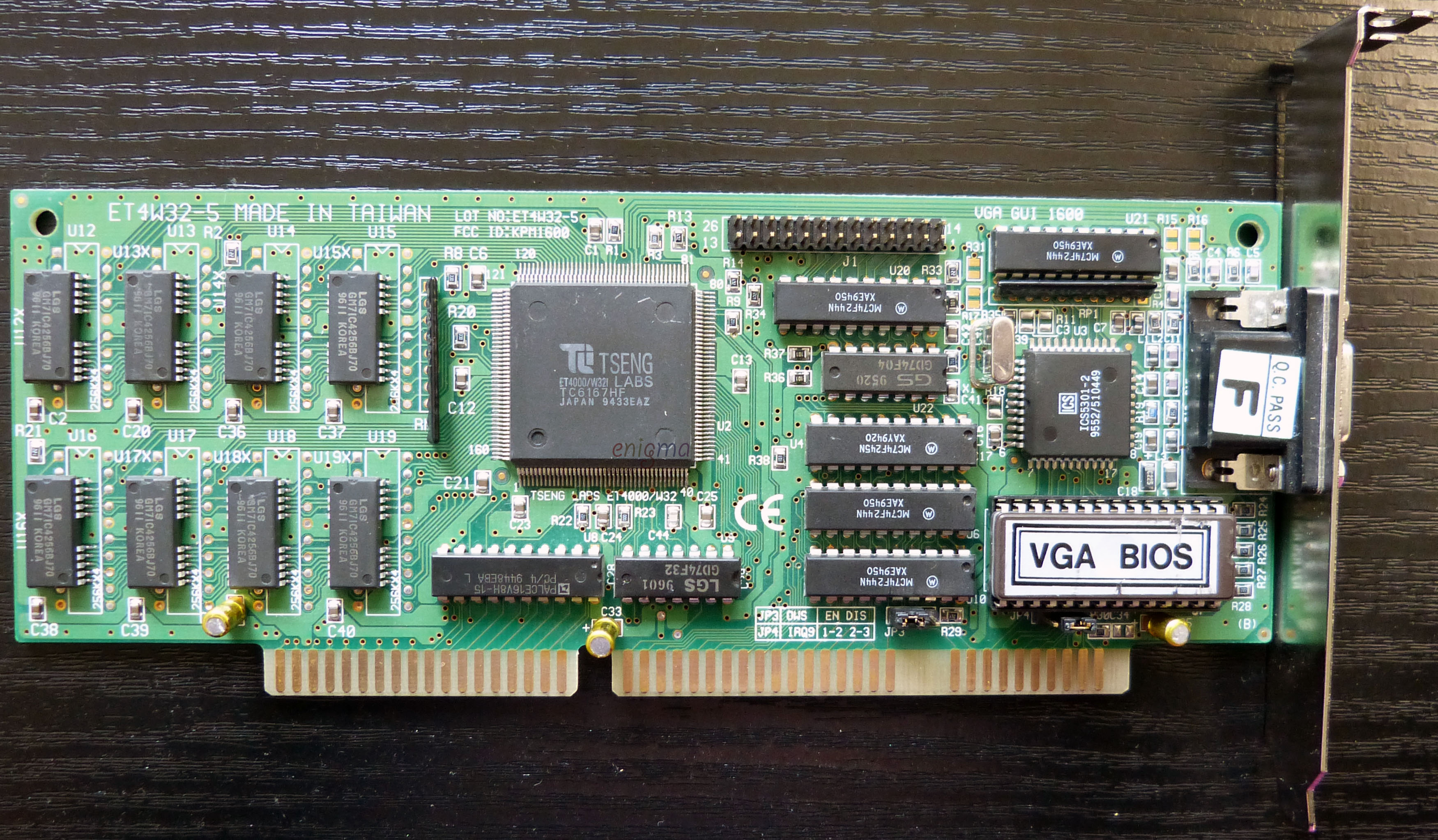 Super-VGA chip from TSENG Labs that uses a 32 bit width data bus to access the DRAM interleaved. The ET4000 is known to give high bandwidth in DOS.